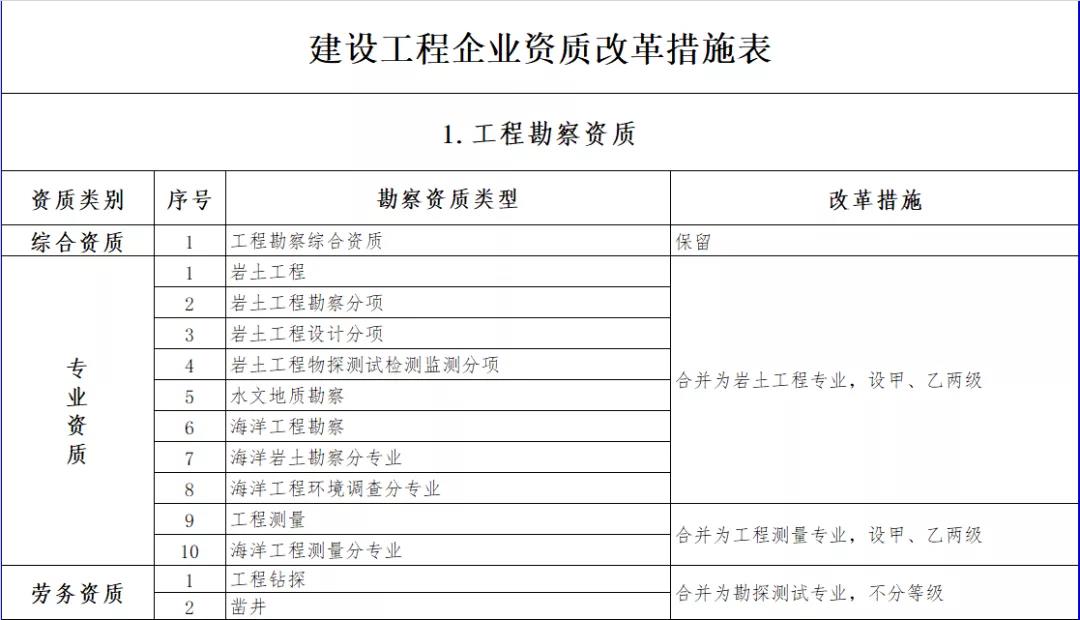 3、 ? ?建設(shè)工程企業(yè)資質(zhì)改革措施表??